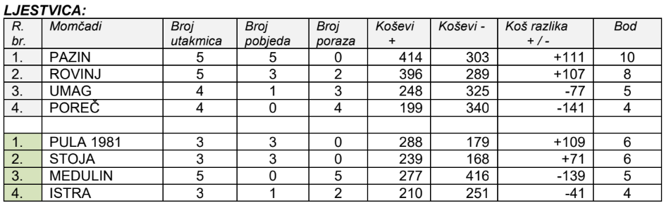 Liga djevojčica mini basket U11 IŽ